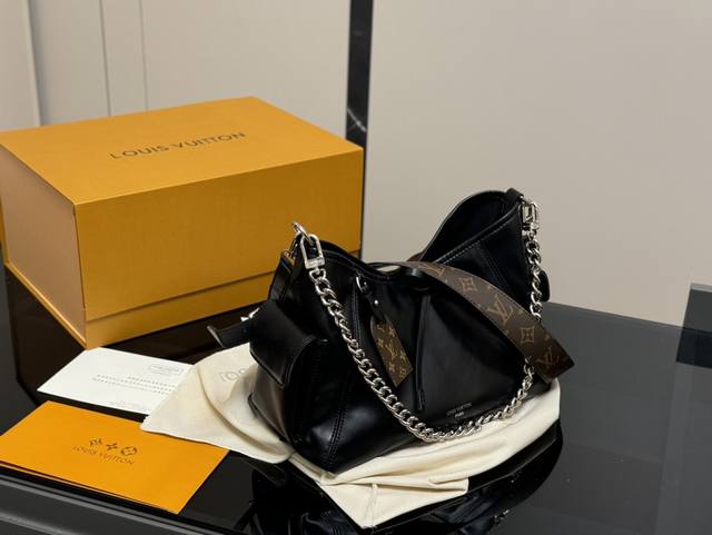 礼盒包装 Lv 老花购物袋系列Low Key Hobo手袋中古系列锁头托特Tote 可调节肩带点缀经典铭纹挂锁...