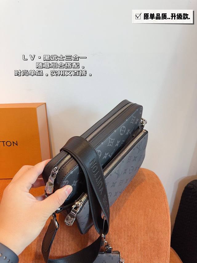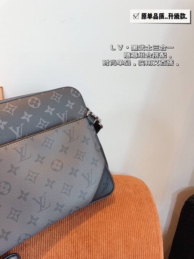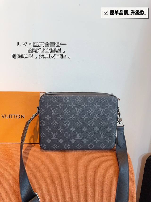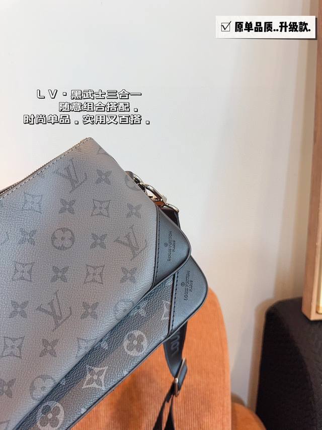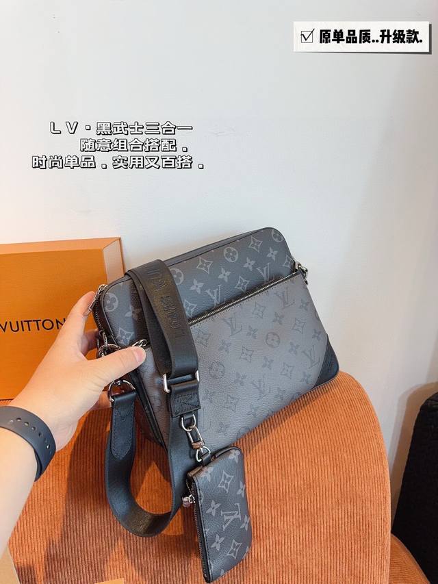 / 配礼盒 Lv 三合一邮差包 男生日常休闲搭配的理想选择~ 实用又百搭,小小的身体大大的空间 非常适合放随身物品~ 面料耐磨耐刮蹭,适合男生大大咧咧的性格~尺寸: