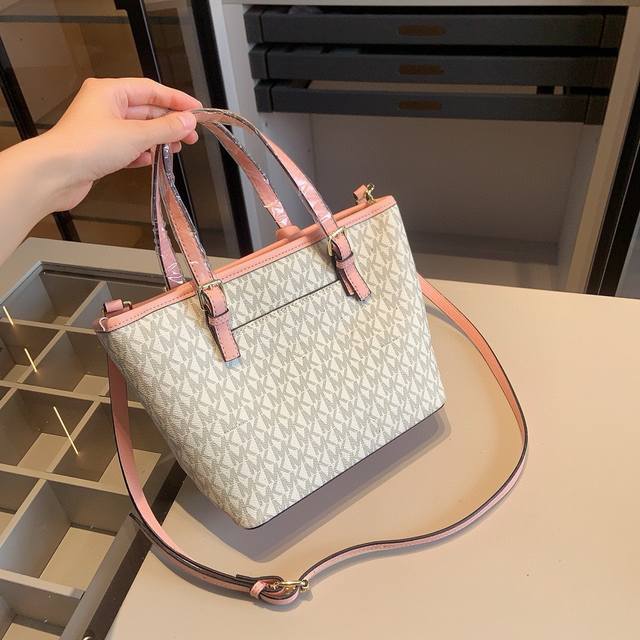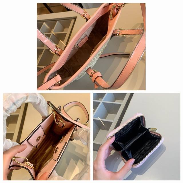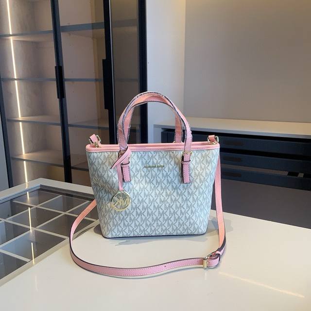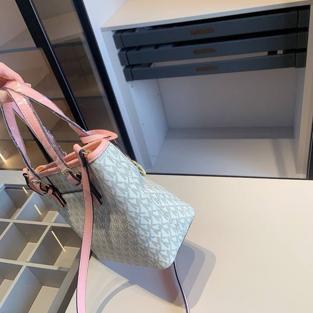 产品介绍 Mk新款超值组合mk专柜爆款托特包~可手提可肩背!原版面料五金!搭配mk同款迷你琴谱包~可手提可斜挎~高品质mk粉色小钱包!非常可爱
