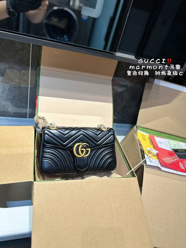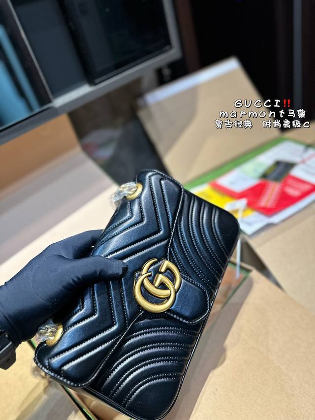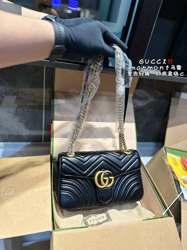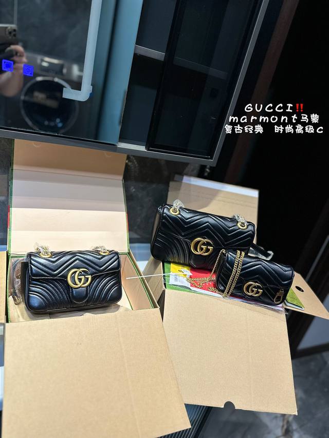 Gucci Marmont 马蒙 链条包gg 简洁大方又不失高级感软软糯糯太有质感了不管是搭配休闲运动还是时装短裙都可以轻松驾驭绝对的时尚百搭颜值超高!!!Size:16.5*10Cm 22*13Cm 26*15Cm