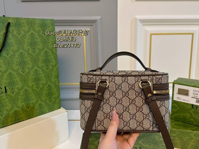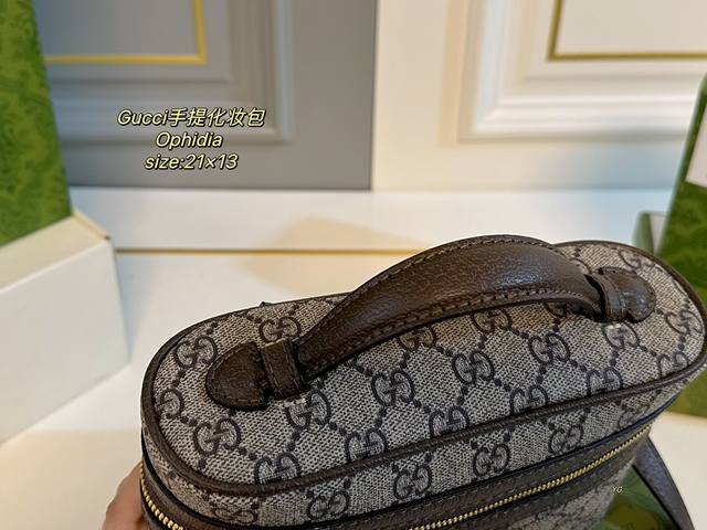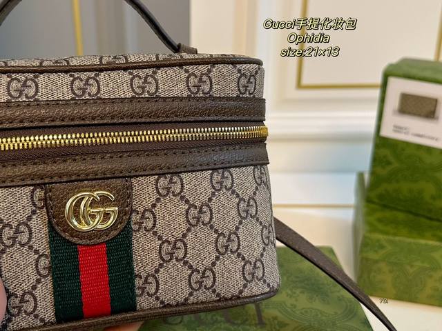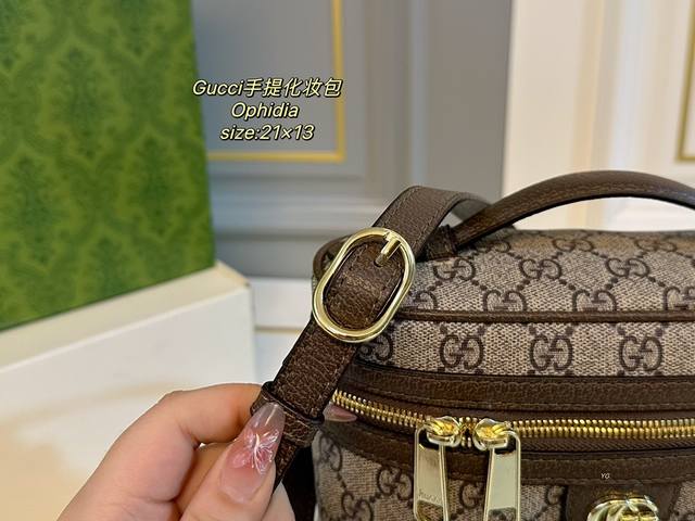 / 配盒 Size:21×13 Gucci 古驰ophidia 系列手提化妆包 配长肩带,可手提可斜挎~ Gg老花帆布涂层材质,辨识度超高 拉链开合设计调节皮肩带,