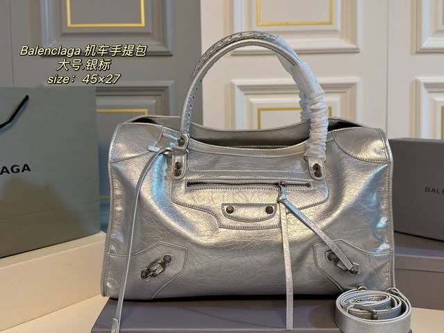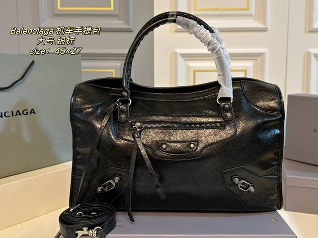大号 无盒 Size:45×27大号 Balenciaga巴黎世家新款机车手提包 新款机车包系列重磅新款王炸登场~ 配长肩带,手提斜挎~ 沿用经典机车元素,细节