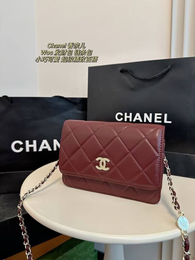 配盒 Chanel 香奈儿 新款woc发财包 链条包 肩带非常有设计感,容量足够,小巧精致。 尺寸:19*14Cm