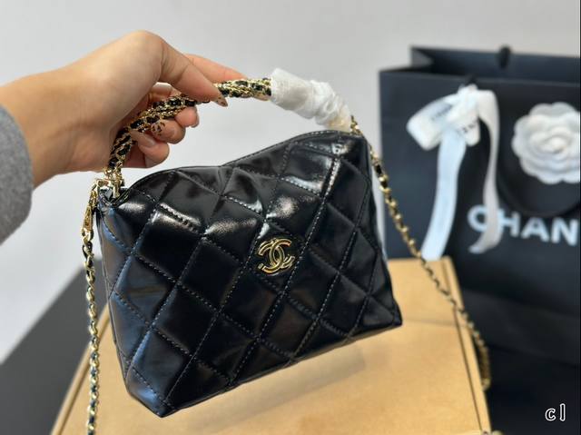 这颜值太迷人啦经典黑金和优雅线条尊嘟好好看,呈现出奢华高级的美感再搭配上金色的小双c,婉转中透出女孩子的气质造型既实用又时髦,实用性也超级强哒包身是油蜡小羊皮,油蜡羊皮的细腻和光泽感真的很绝,自重也是刚刚好的那种而且链条是可拆卸的,当手拿包晚宴包都很合适,斜挎也能搭配休闲装 尺寸18*14
