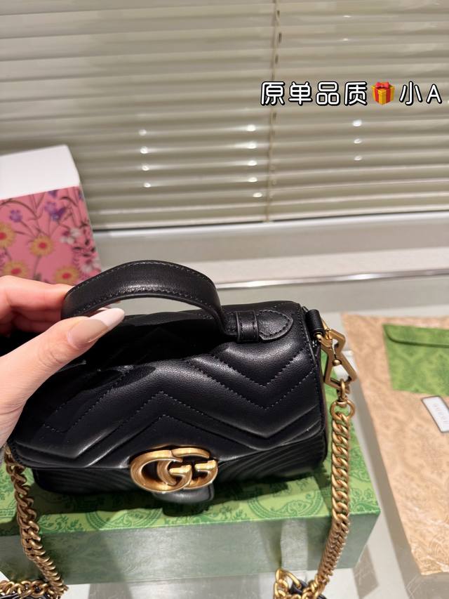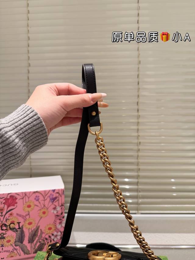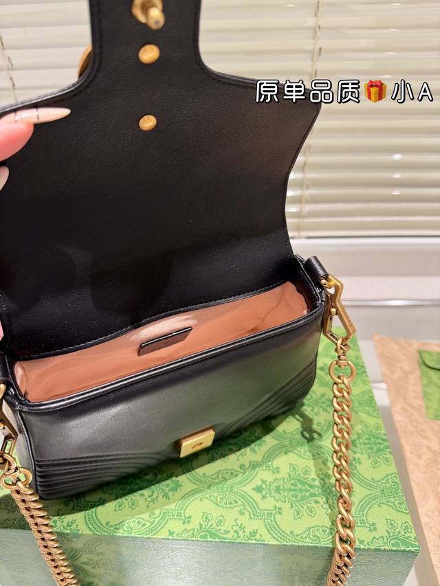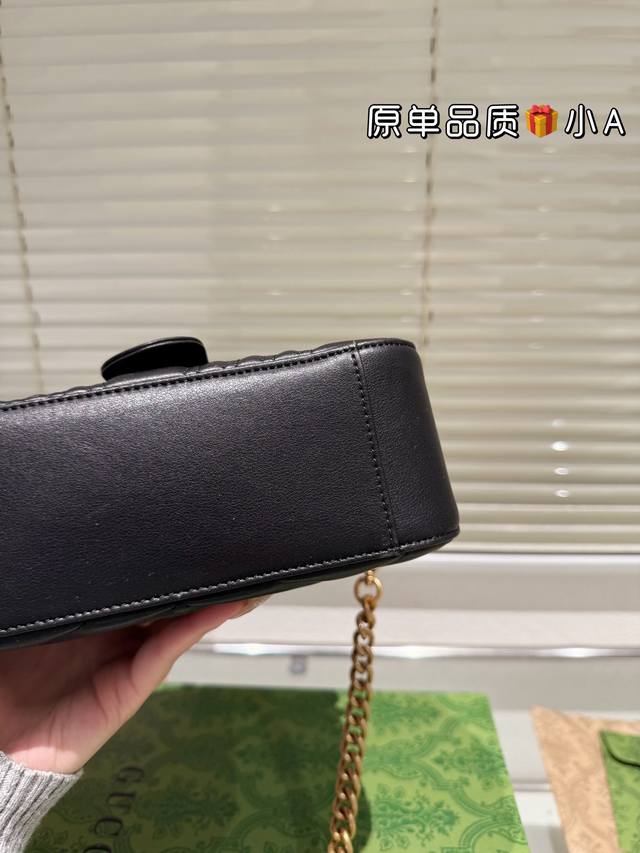 原单品质 飞机盒 免税店包装 飞机盒 “牛皮版本 内里带专柜钢码” Gg Marmont 邮差包 系列链带肩背包采用颇具结构感的柔软造型和超大号翻盖封口,配以双