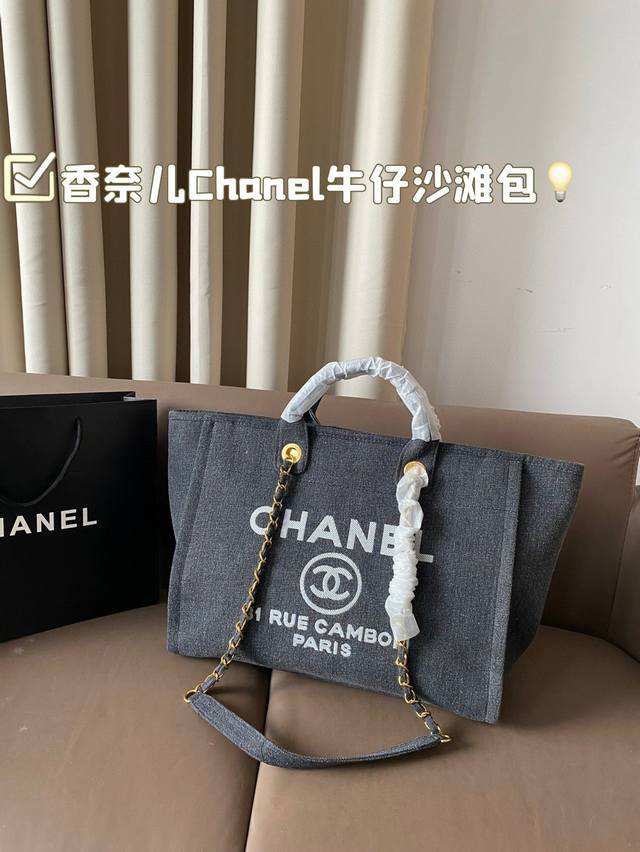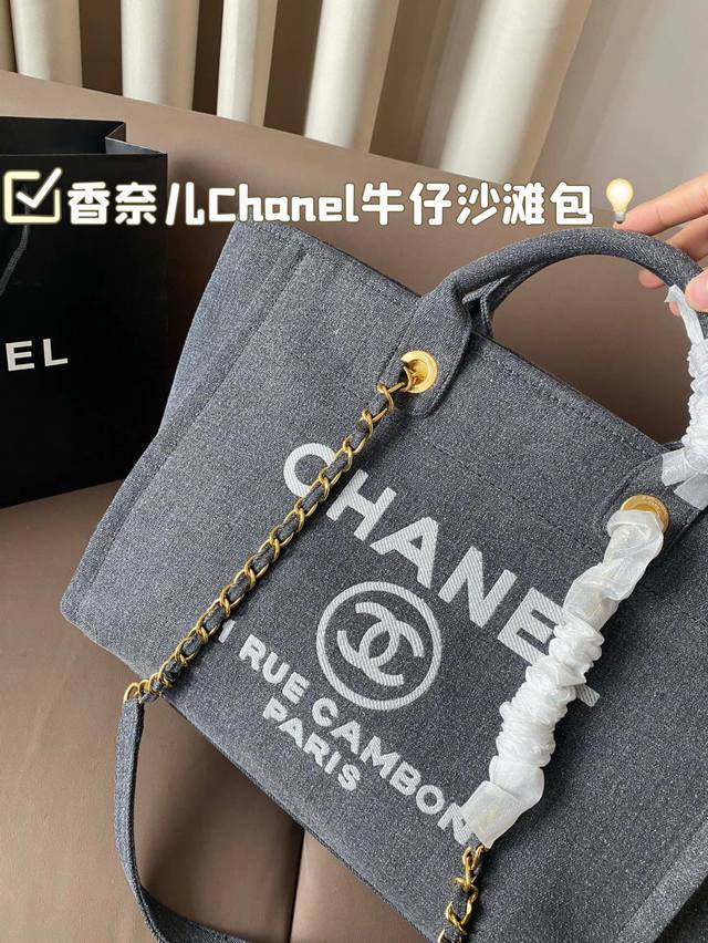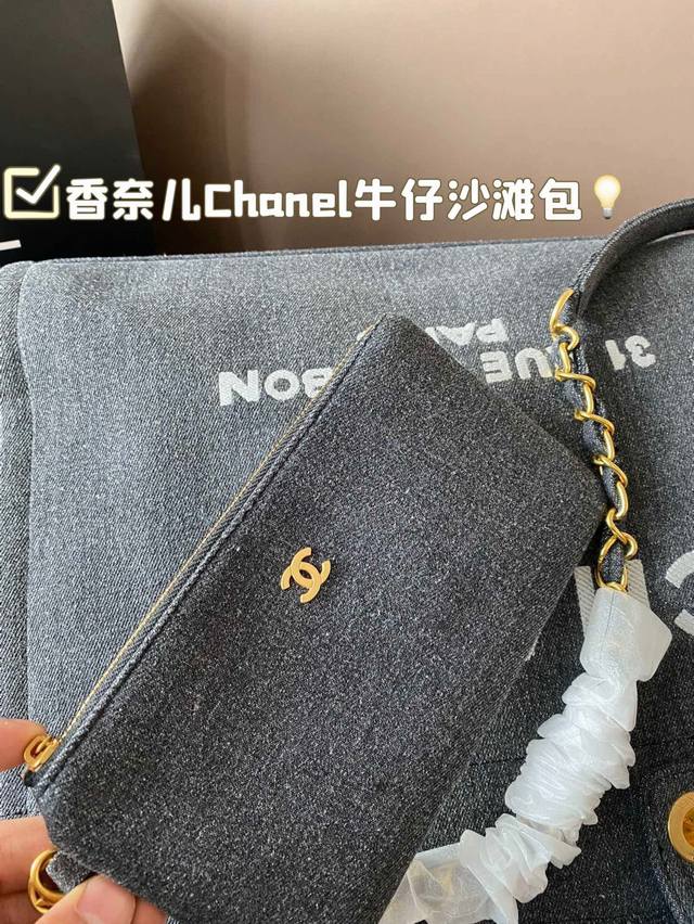 / 香奈儿chanel年度牛仔沙滩包 2024年香奈儿沙滩包融入了珍珠元素真的是仙气很多大号还有手柄可以单肩的同时还能手提 容量真的是超大呀完全可以做旅行包用了 如