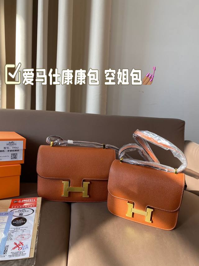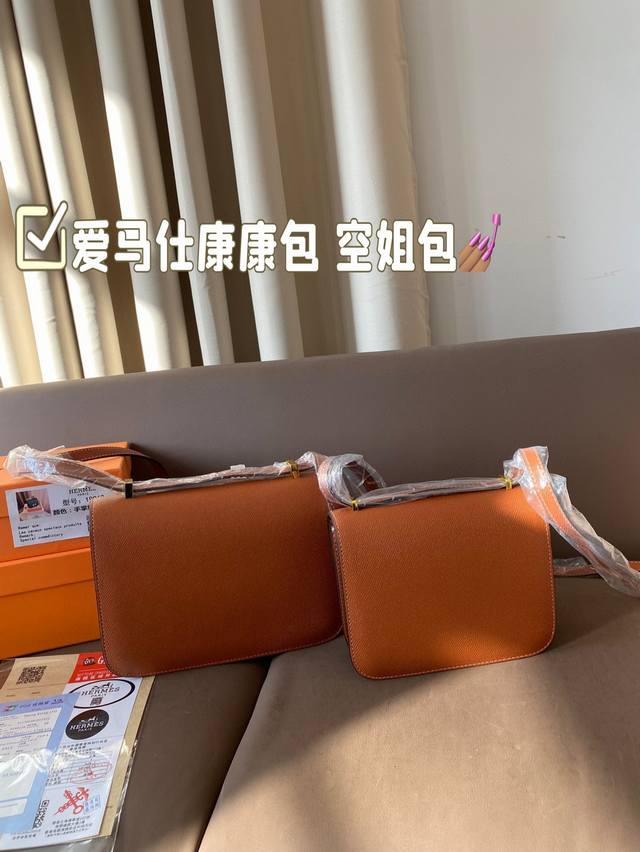 爱马仕康康包swif 爱马仕空姐包, 皮料特点纹路细腻平滑手感非常好 显色度高,颜色选择比较多。 尺寸大号23*16 小号19*15