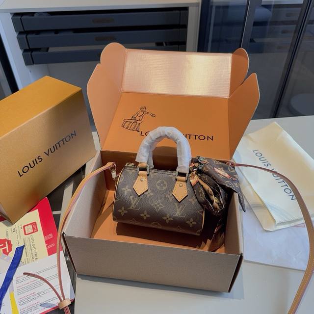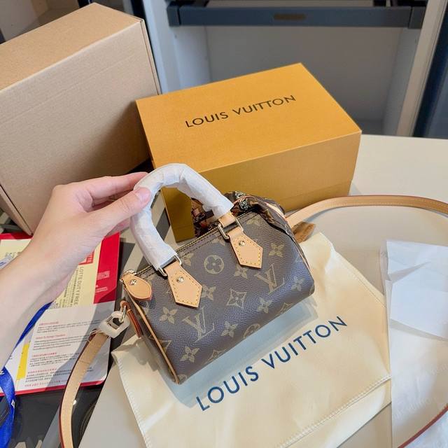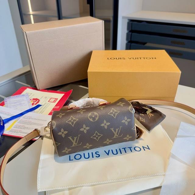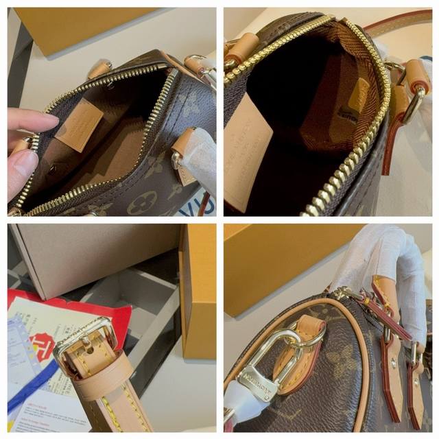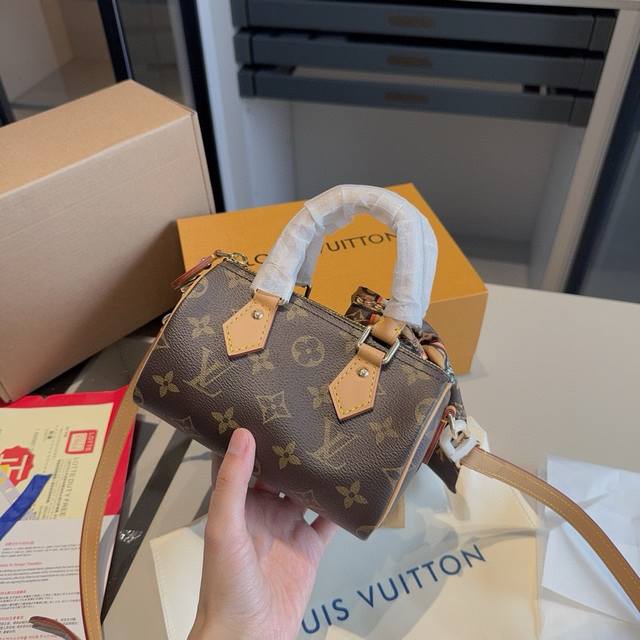 升级版全钢五金lv专柜爆款nano Speedy迷你枕头包~配长肩带~非常实用众多明星追捧的单品哦 原版老花面料配牛皮顶级原版全钢五金 整包对花裁剪 上身效果超棒!原单品质 ~超高回头率!原版飞机盒原版折叠礼盒包装 Size:16*10*8