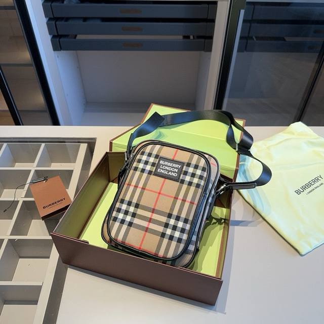 / 新品推荐 升级版巴宝莉专柜同款格子系列~男士斜挎包!男女通用潮范儿十足~品质很好超正 轻便实用!原版格子布面料配牛皮原版定制五金!顶级做工!原版折叠礼盒包装 S