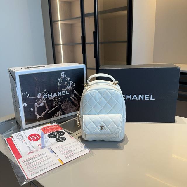 Chanel香奈儿爆款迷你双肩包~鱼子酱~可手提可肩背!小香顶级全牛皮面料哦!采用原版复刻五金配件!经典logo!原版做工!皮质手感超级棒哦!堪比专柜品质~人手必备单品哦! Size:13*19*8