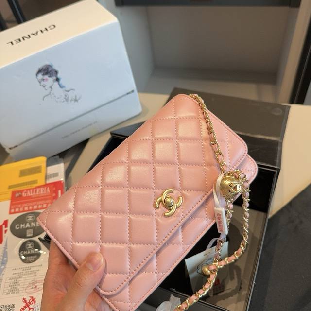 Chanel香奈儿经典金球系列~发财包~Woc菱格链条包金球可调节~小香顶级小羊皮面料哦!采用原版复刻五金配件!经典logo!原版做工!皮质手感超级棒哦!堪比专柜品质~人手必备单品哦!原版飞机盒原版折叠礼盒包装 Size:19*12*4