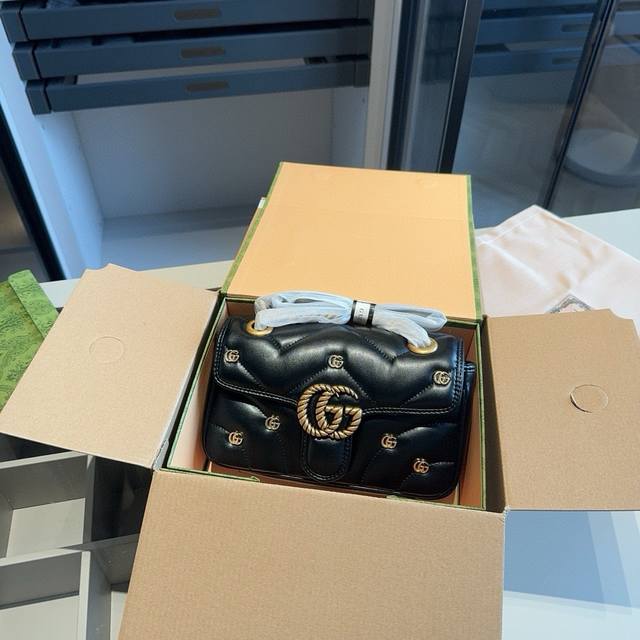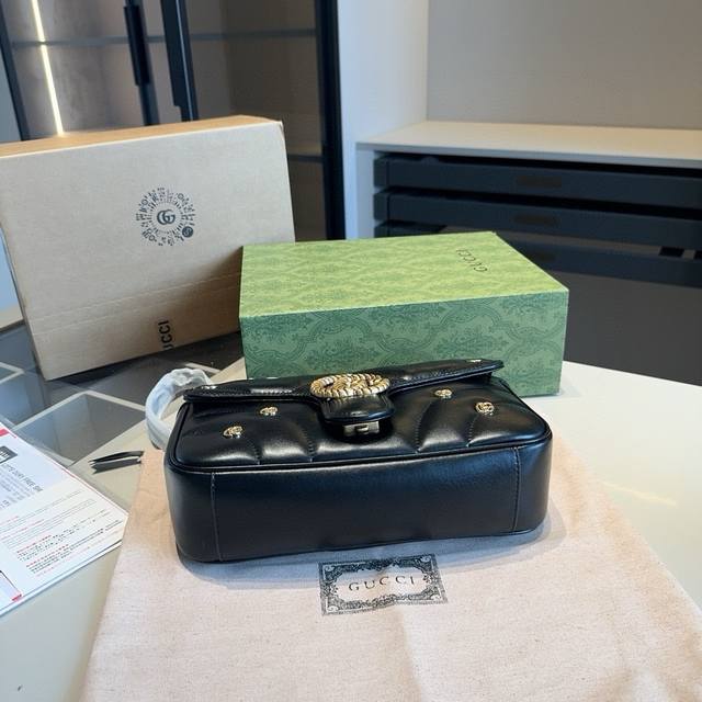 升级版~高端货全套包装牛皮系列~Gucci 专柜新款marmont泡芙包~徽章铆钉链条包原版头层牛皮!各大明星追捧的爆款~采用顶级复刻五金配件!经典logo!顶级做工!可肩背!堪比专柜品质原版飞机盒原版折叠礼盒包装 Size:大号26Cm 中号22Cm