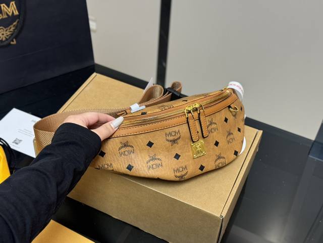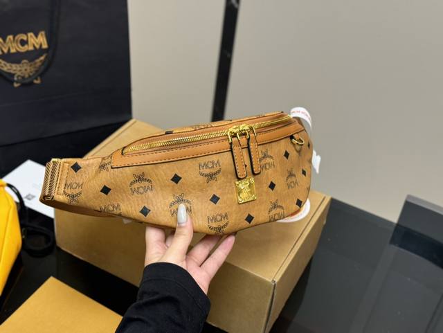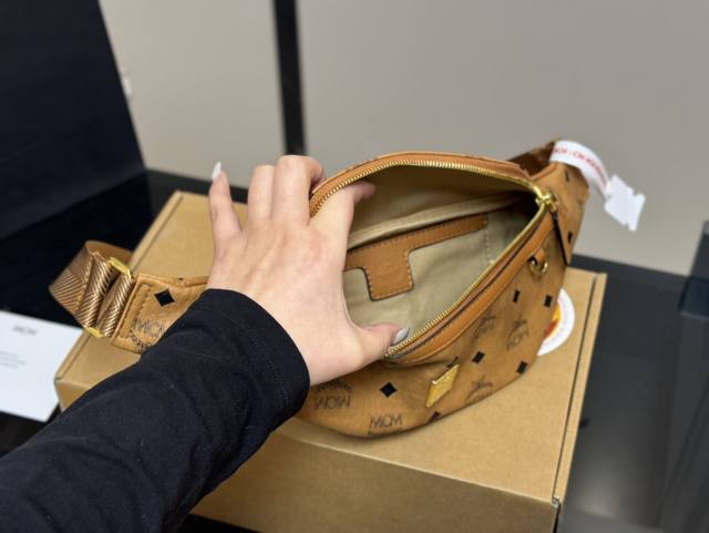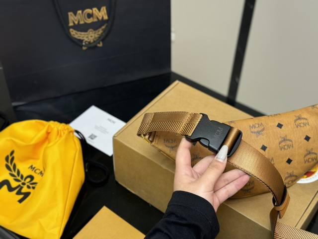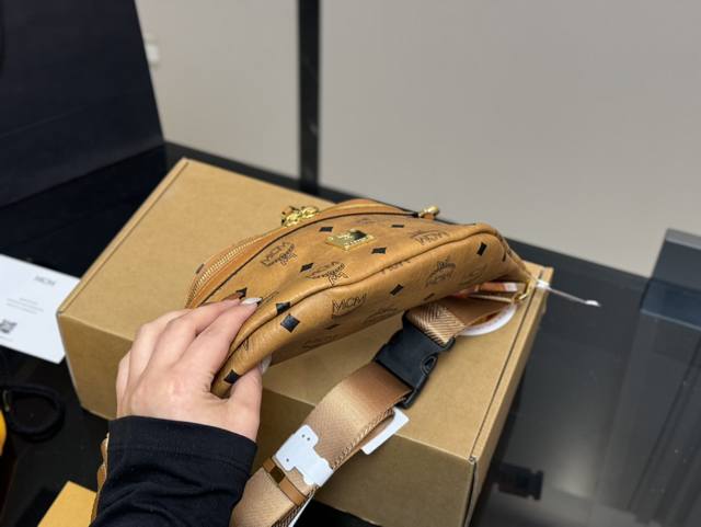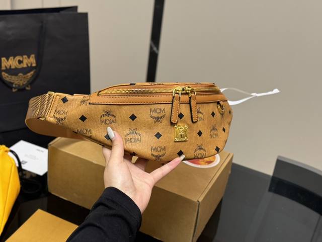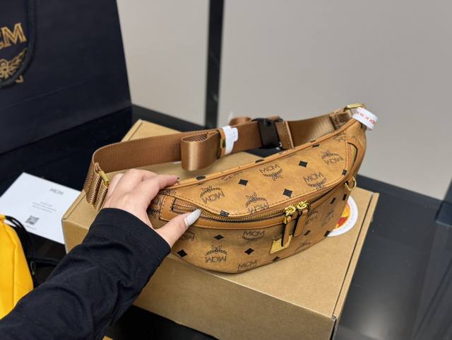 配飞机盒 Mcm胸包 男女通用情侣款哦 休闲度假旅游必备很好的解放双手! 代购级别 最高版本! 尺寸:30.11Cm