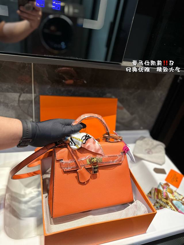 牛皮 配折叠盒 小马丝巾 爱马仕 Kelly 邮差包公文包 上身就是档次和高级感. 可腋下可手提可单肩.多种背法。...
