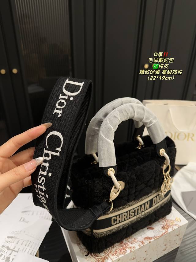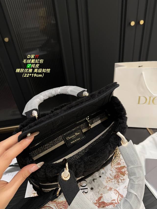 / 纯皮 配折叠盒尺寸22.19 迪奥 毛绒戴妃包 Dior D家这款包包绝了!巨巨巨百搭!软乎乎的手感属实冬日限定了,不仅治愈还自带温柔属性的贵气感。规格不会很大