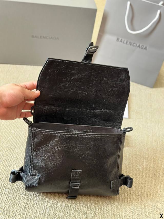小号 折叠盒 Size:34×10小号 Balenciaga巴黎世家super Busy口袋机能单肩包 超级帅气的工装风包包, 油蜡皮简直不要太 包身外侧铺满大