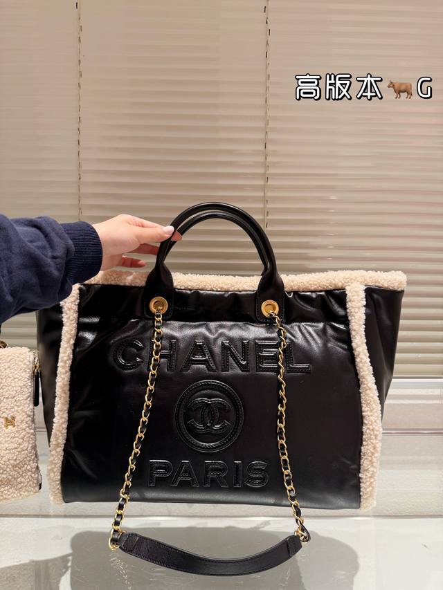 羊羔毛头层皮 Chanel 沙滩包 慵懒随性又好背 上身满满的惊喜 高级慵懒又随性 彻底心动的一只 Size:40 30Cm