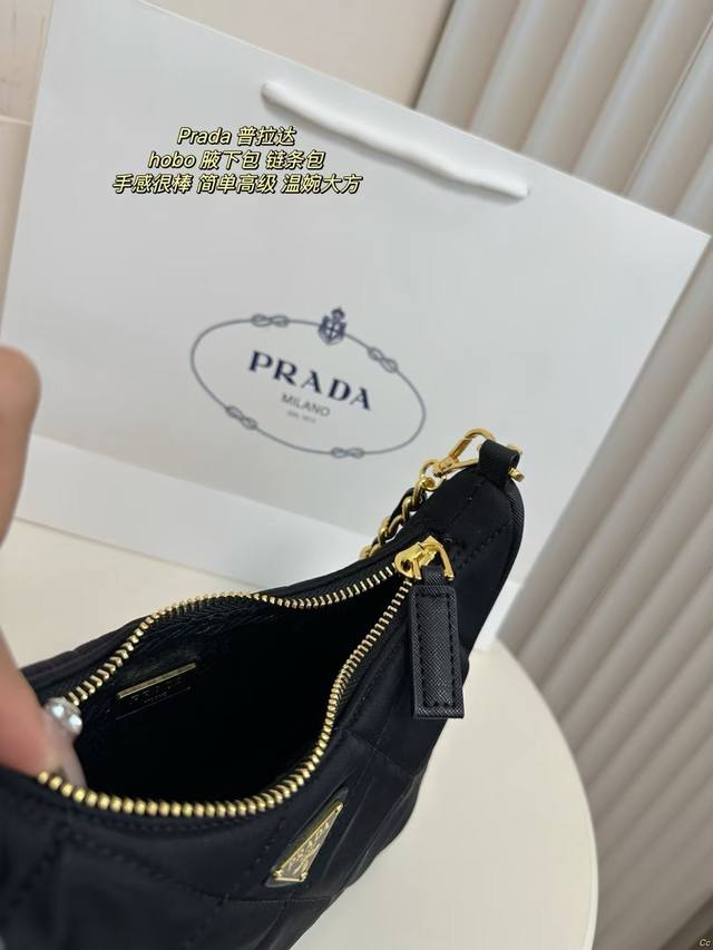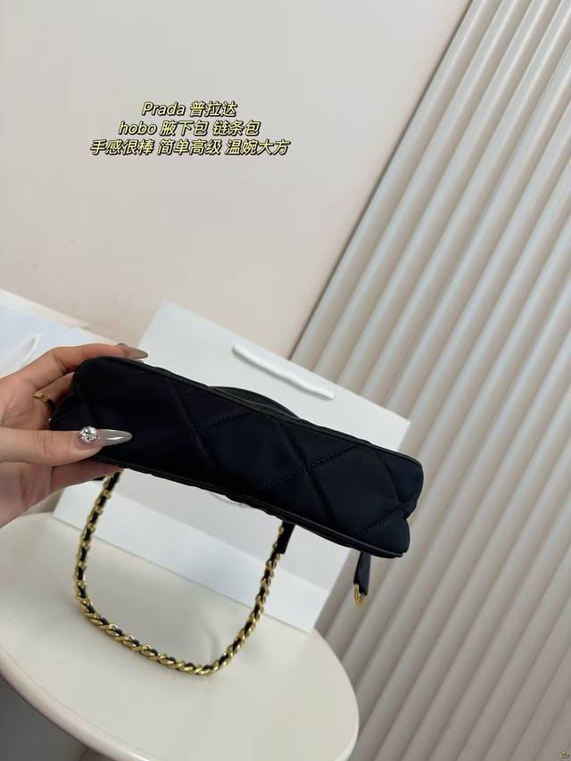 配盒 Prada 普拉达 Hobo 腋下包 链条包 一下就温柔起来了,秋冬很适合背,不仅手感很棒 还超级时尚百搭,简直无法拒绝。 尺寸:22*12Cm