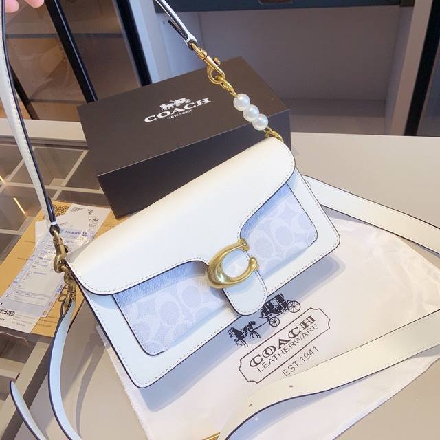 高端货配珍珠挂件coach蔻驰专柜经典酒神包tabby~冰川色!经典永不过时的款式哦!顶级做工!面料采用牛皮材质!顶级五金!堪比专柜品质!绝对高端货原版折叠礼盒包装 Size:26*15