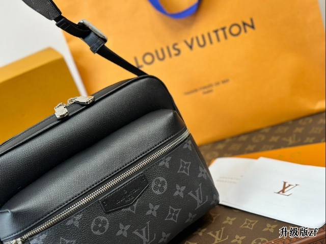 Lv老花男士邮差包款被称为黑武士,老花拼接黑色牛皮,加上双层相机包设计,包包的肩带可以调节长短,可以单肩或者斜挎,包的容量也很大,日常通勤和旅行都很实用,相对而言也是lv经典的一款,男包常备花色,无疑黑棕咖,好看又百搭 尺寸25Cm