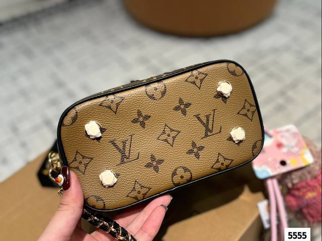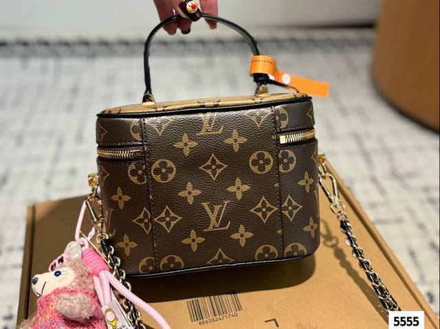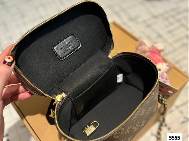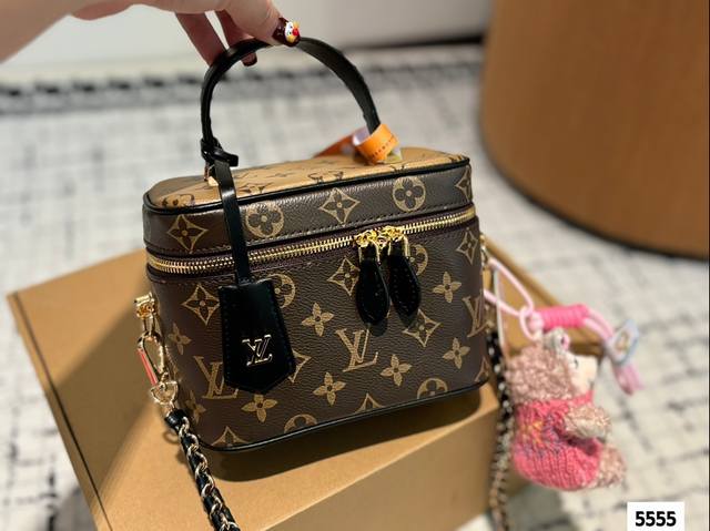 配挂件 Lv Vanity 老花系列 化妆箱 内胆版 造型设计感强烈的化妆箱链条包。 采用标志性的l箱包元素,尽显浓烈的复古情怀色调。灵活运用拼色风格,金属与皮