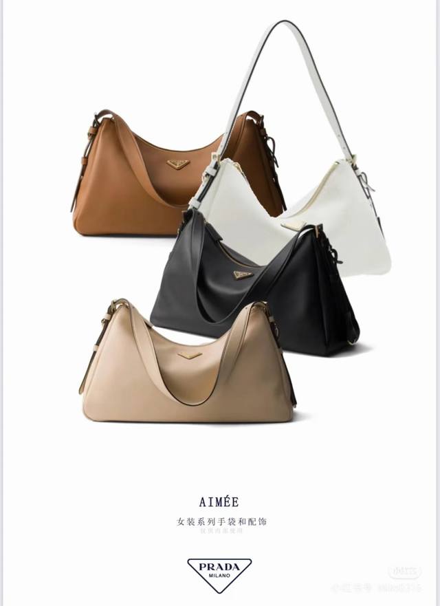 / 平纹牛皮系 Prada最新款手袋新款单肩包的设计灵感源自对hobo廓形的探索,线条柔美,颇具现代感,皮质柔软,超级百搭,背法很多,婉转的皮革轮廓结合容量大空间充
