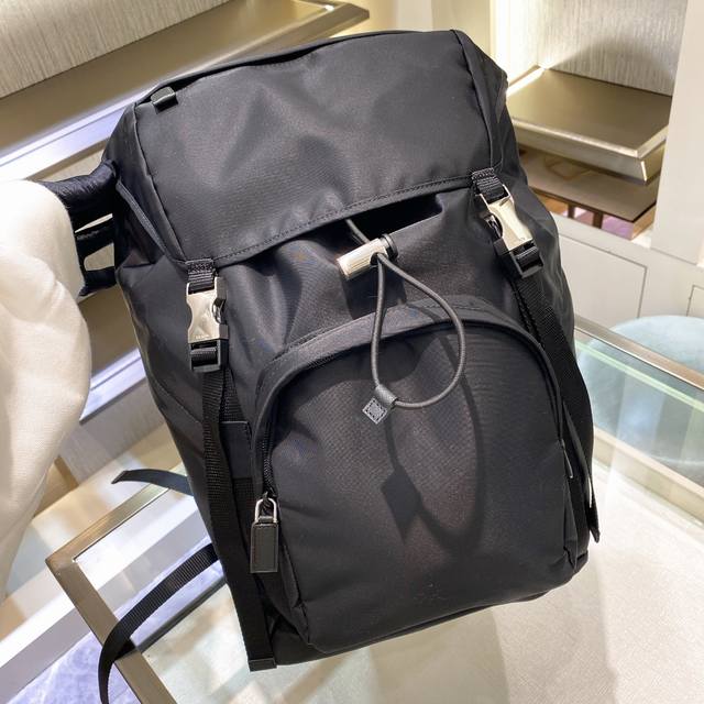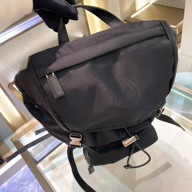 经典爆款 最新款pr Da 男士双肩包 2Vz135 三角形搪瓷铭牌标志 进口原厂降落伞布料 采用进口设备+原版五金配件 可调式尼龙肩带 翻盖带扣合和内部抽绳拉合 背面衬垫完美细节 带有代工码 尺寸 17*27*45 时尚休闲 时尚潮人必备 出货咯