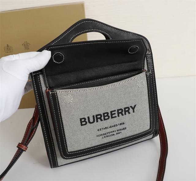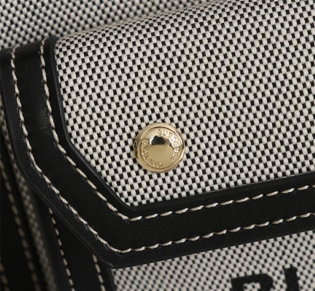 B家最新款典藏灵感的托特包,精选双色帆布拼缉明线细节的皮革制成,顶部提柄携带,或使用可拆式肩背带。1个外侧翻盖口袋采用磁扣开合;1个内侧拉链口袋 尺寸:23 X