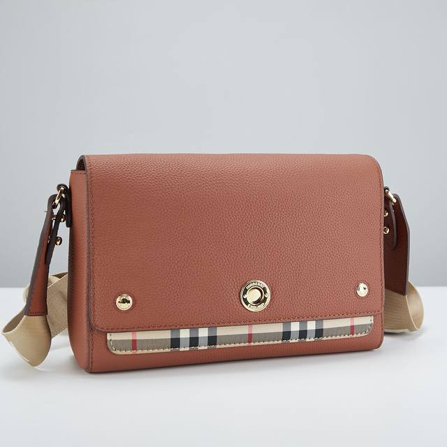 早春新款note斜背包到货选用粒纹皮革与 Vintage 复古格纹打造,设有徽标镌刻按扣。搭配可拆式宽背带,随心变换为肩背包或手拿包造型 25 X 8.5 X