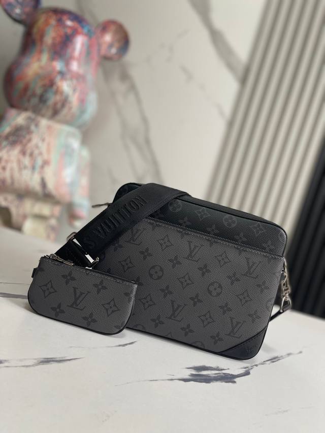 顶级外单 独实家拍 M69443黑灰 Trio 邮差包由 Monogram Eclipse 帆布与 Monogram Eclipse Reverse 帆布制成。