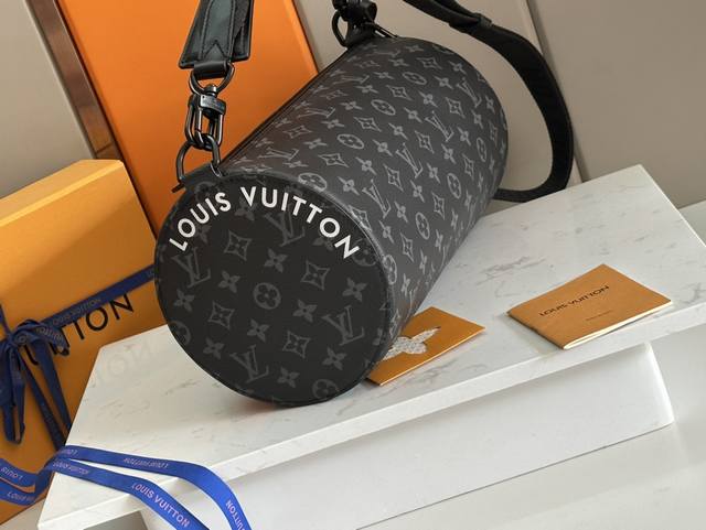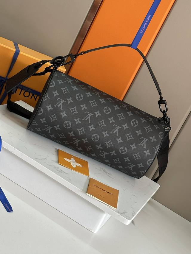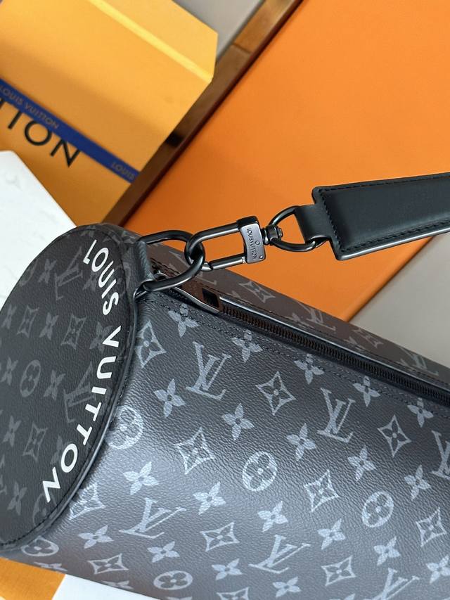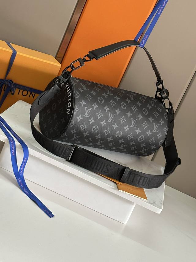 / 顶级原单 M46796 黑皮本款 Soft Polochon 手袋融合 Monogram Macassar 帆布和亮色皮革细节,令别致的圆柱轮廓更显摩登,为携带