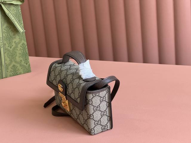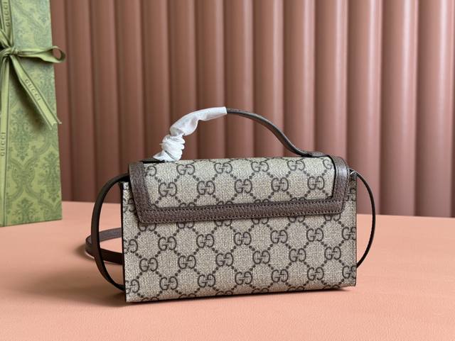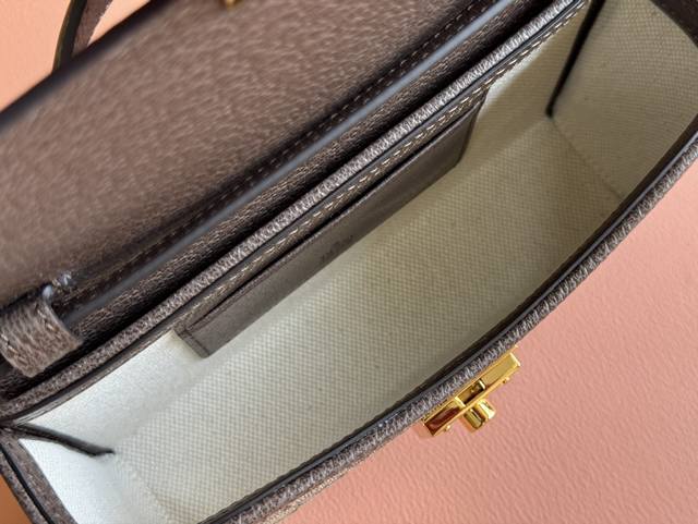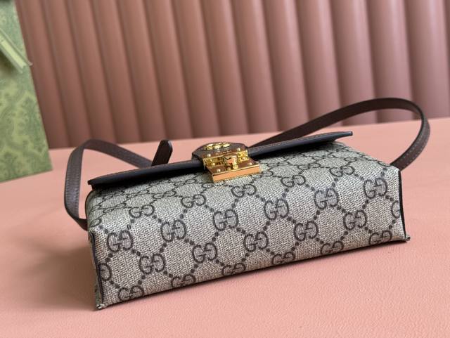 Padlock系列小号肩背包。这款小号肩背包以品牌手工行李箱工作室起源为灵感来源,采用米色和乌木色gg Supreme帆布打造,亮眼呈现挂锁式锁扣开合,搭配棕色皮革滚边和全新可调节皮革链条肩带。金色调配件和皮革钥匙扣令整个设计魅力倍增。米色和乌木色gg Supreme帆布,棕色皮革滚边,金色调配件,米白帆布衬里。