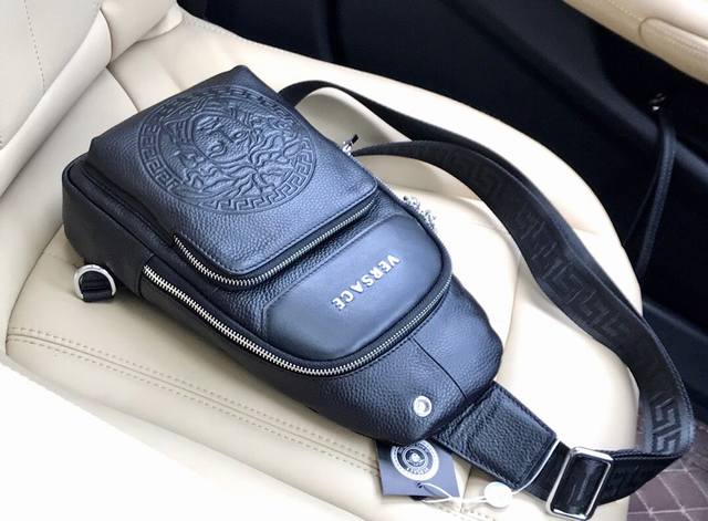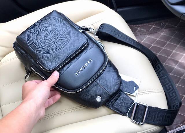 批 。 范思哲 胸包顶级高端大气进口原版头层牛皮,耐磨耐。资深裁缝立体剪裁完美版型上身效果极佳设计理念独特,实物拍摄.触摸可及的效果 尺寸:18X31X7Cm 型号:33031-1