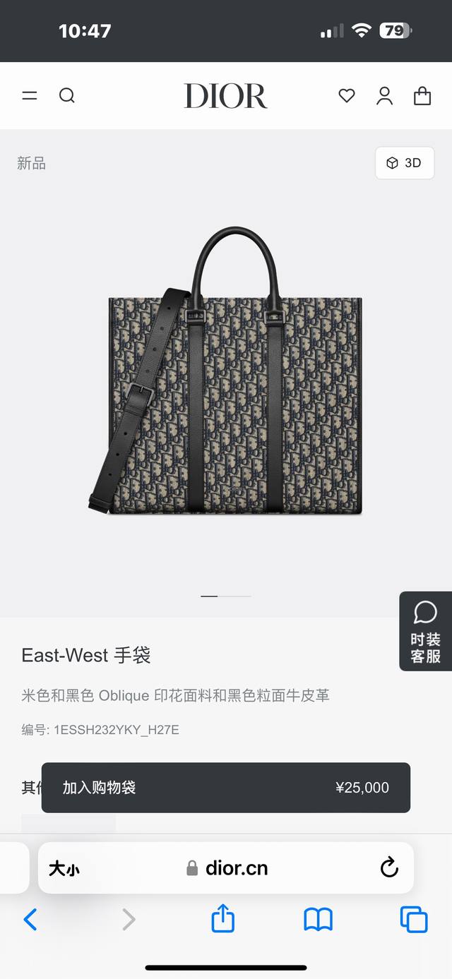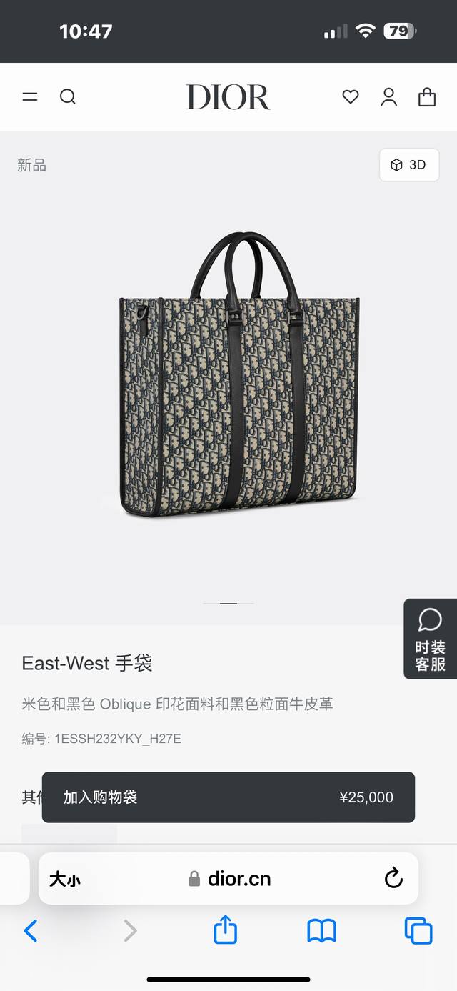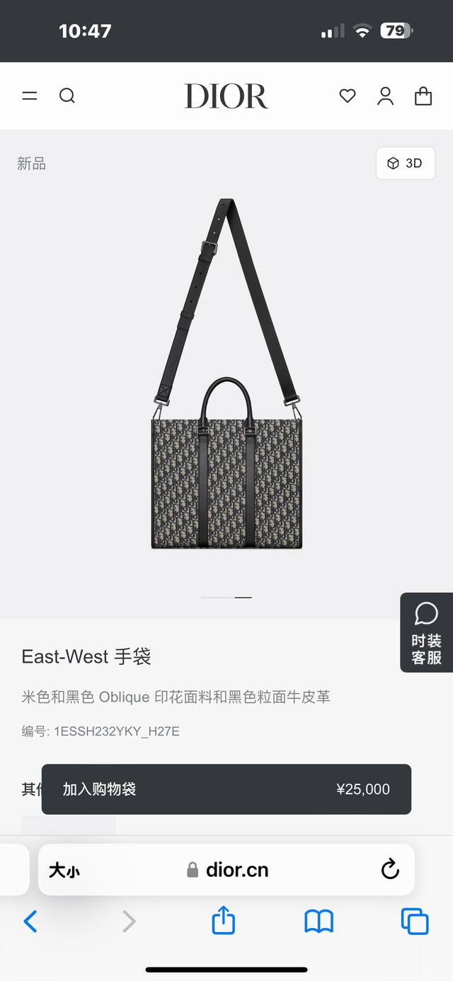 这款 East-West 手袋彰显经久不衰的高雅风格。采用米色和黑色 Oblique 印花面料精心制作,全新演绎经典的 Dior 图案,饰以黑色粒面牛皮革细节和正面的 Dior 标志提升格调。宽敞隔层可轻松收纳各种日常用品,搭配皮革顶部手柄和可调节、可拆卸肩带,可手提、肩背或斜挎。