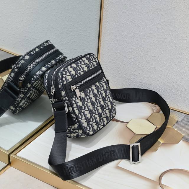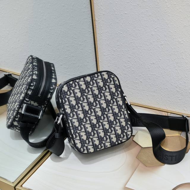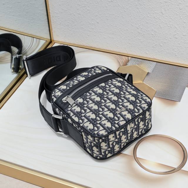 / 配老虎盒子!配头层荔枝纹牛皮 D家这款信使包是本季新品,精巧实用,是日常的理想良伴。采用米色和黑色 Oblique 印花面料精心制作,饰以黑色粒面牛皮革细节。拉