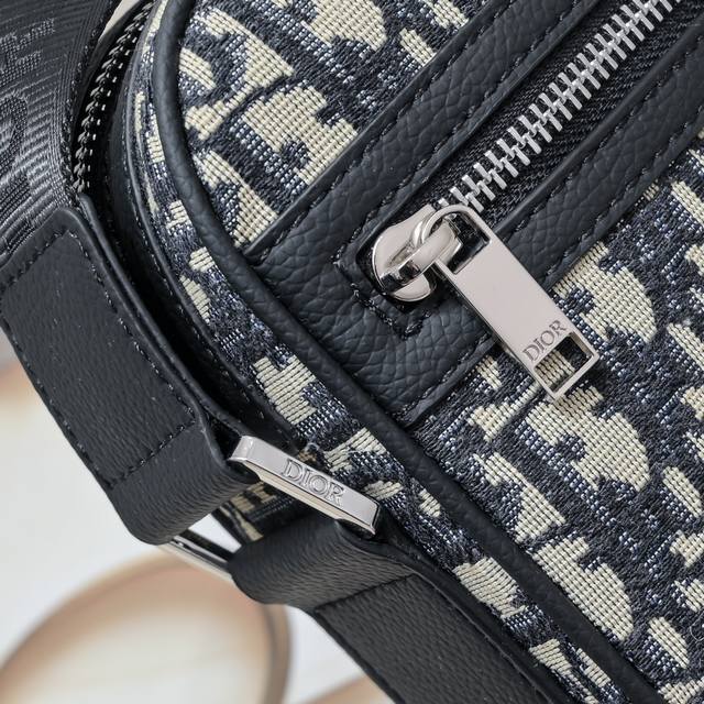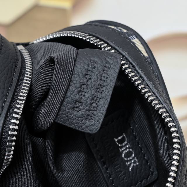 配老虎盒子!配头层荔枝纹牛皮 D家这款信使包是本季新品,精巧实用,是日常的理想良伴。采用米色和黑色 Oblique 印花面料精心制作,饰以黑色粒面牛皮革细节。拉