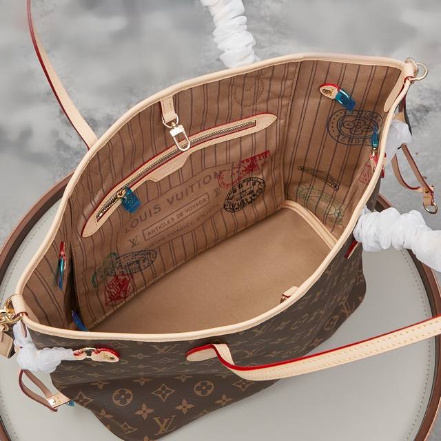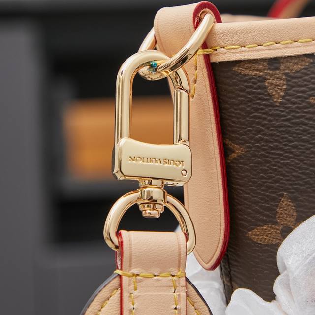 Neverfull Bandoulière Inside Out Gm 手袋以 Monogram 帆布和缤纷压花织物演绎双面设计,再令考究包身映现金属件的细腻莹泽,为经典构型注入新季意趣。巧用侧面钩扣和可拆卸肩带,可轻松化身 Hobo 手袋或斜挎包。