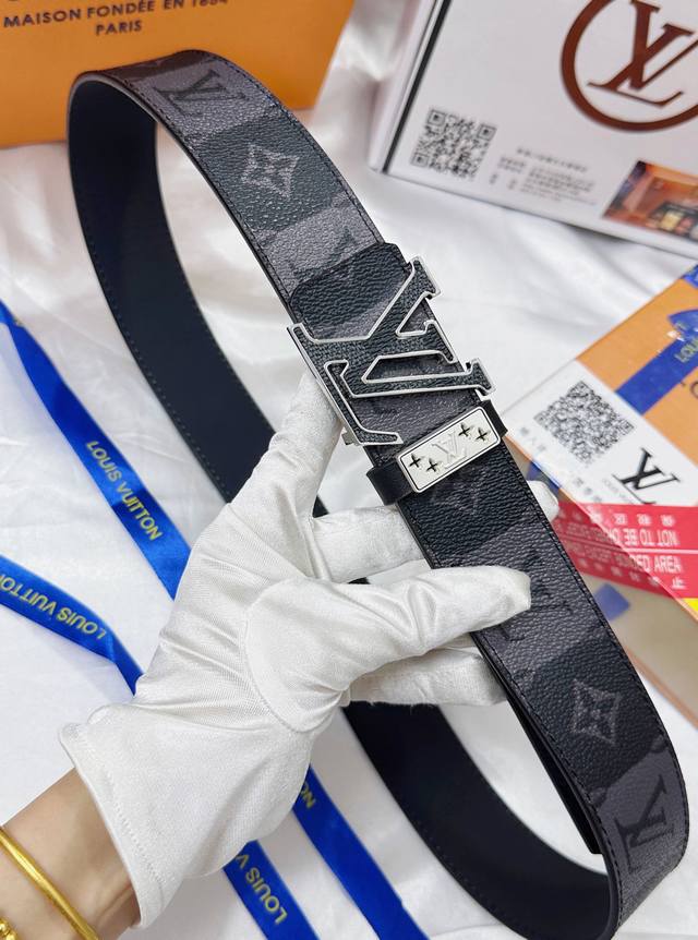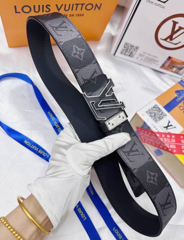 品牌:Lv路易威登 等级:男士皮带.定制头层皮.双面用。油边精致、官网同步新款 配专柜全套包装 送打 长度不裁剪 扣头:钢扣...