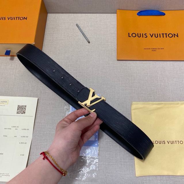 / 品牌:Lv路易威登 等级:男士皮带.定制头牛层皮.双面可用。油精边致、官同网步新款 配专全柜套包装 送眼打针 长度不裁剪 扣头:钢扣 长度:100 125Cm
