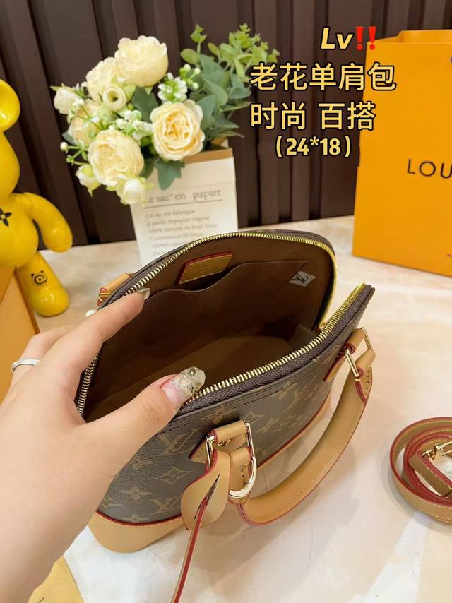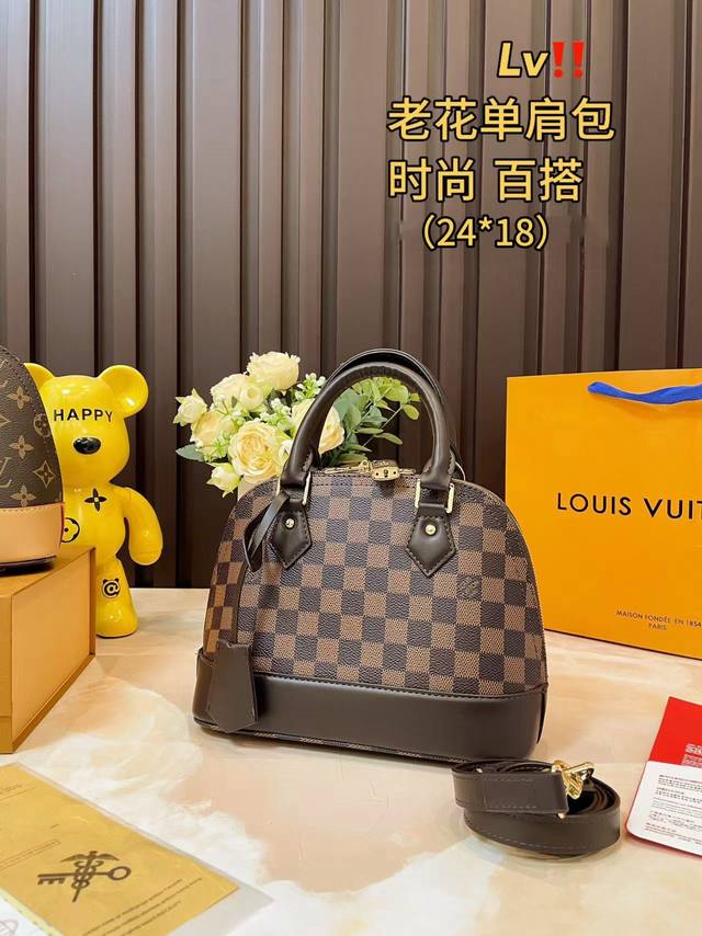 Lv Lv Alma Bb老花贝壳包 原版高品质 包包这款retiro 手袋以标志性的老花面料制成 经典永恒。优雅低调的外形设计和宽敞的包身更加入了实用性。使用说明:-变色牛皮饰边,闪亮的纯钢金色五金配件- 可调节肩带,配有树糕皮的肩垫,拉链闭合。- 超细纤维内衬,尺寸24×18Cm