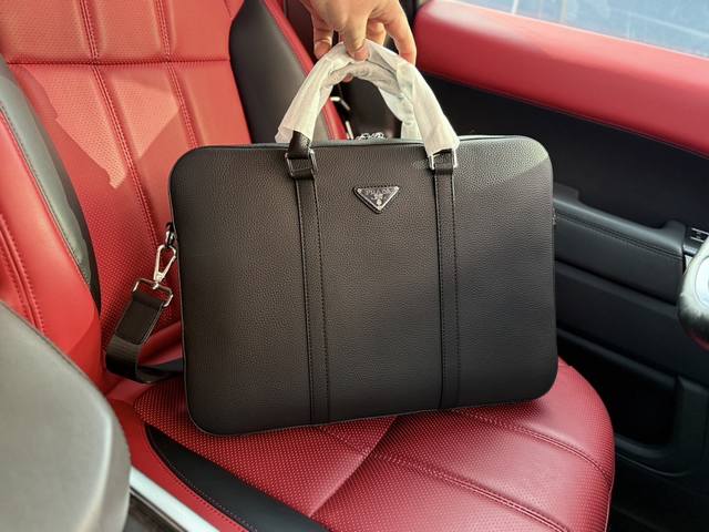 牛皮版高端货 “ Prada ”普拉达公文包普拉达手提包 男士荔枝纹牛皮公文包 顶级进口原厂面料高清五金logo标志、专用里内里。电脑隔层,拉链暗袋。顺滑拉链、油边超平滑、可单肩斜挎背!做工精致每个细节到位!职业男人必备款。规格:40X29X6Cm