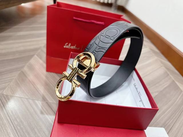 原厂皮 Ferragamo.菲拉格慕 全套包装 支持nfc扫码 宽度3.5Cm 高级定制款男士皮带 双面进口牛皮 可双面使用 自行选择搭配 真材实料...