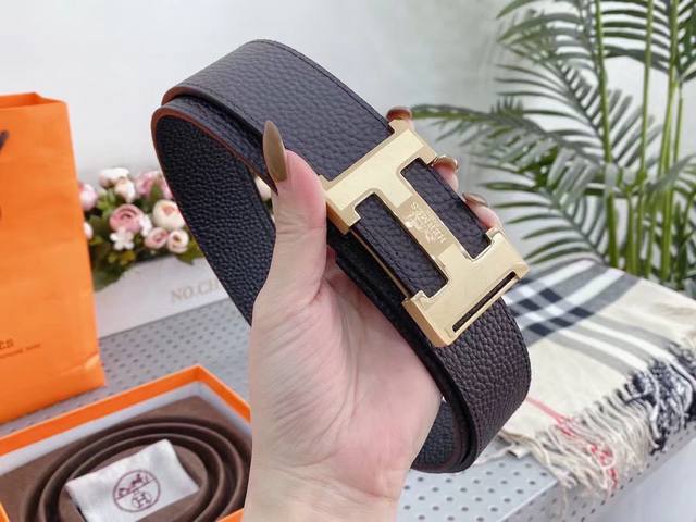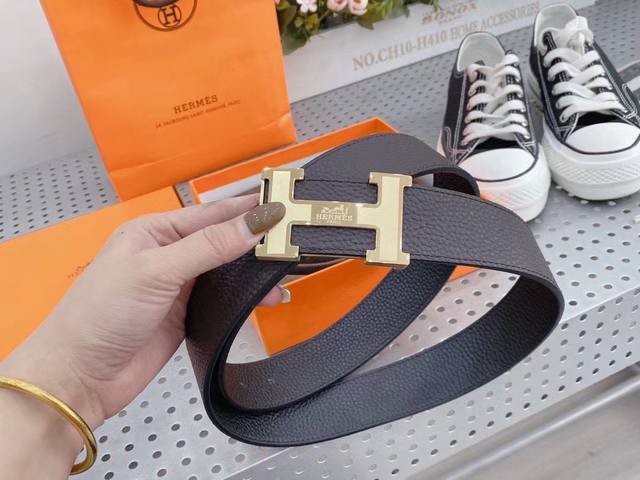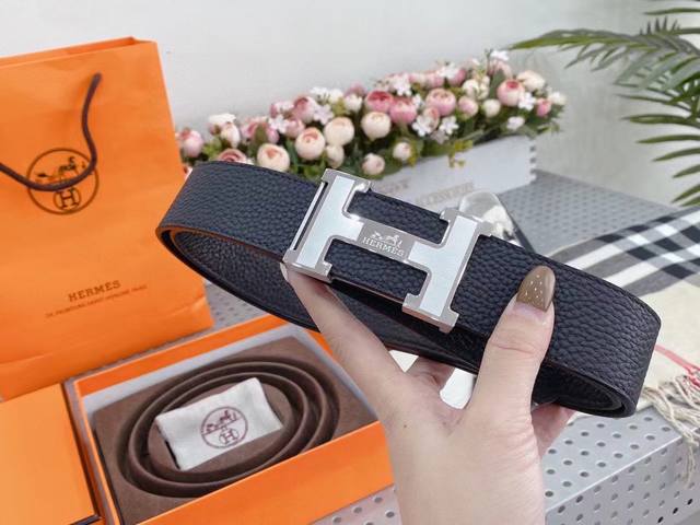 爱马仕宽度3.8Cm 精美扣头 不褪色 头层牛皮底 双面可用 手感极佳 上身郊果棒 商务休闲两用