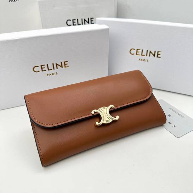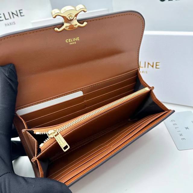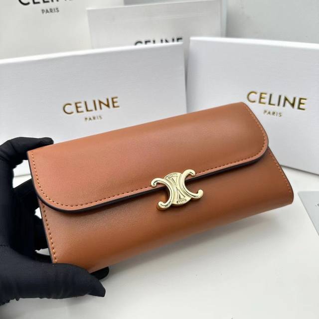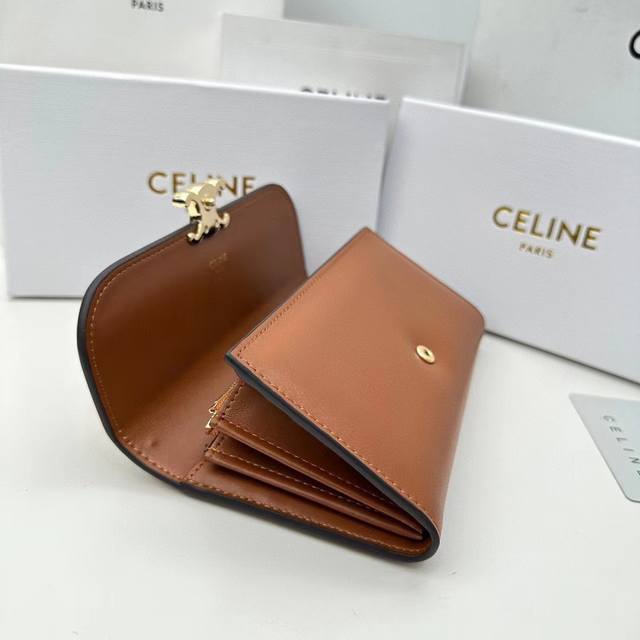 celine新款卡包,Triomphe翻盖卡包,牛皮大面内配平纹超纤,旋转锁扣开合,1个加厚主隔层,2个内侧卡槽。 编号:10M473 尺寸:10.5X8.5X