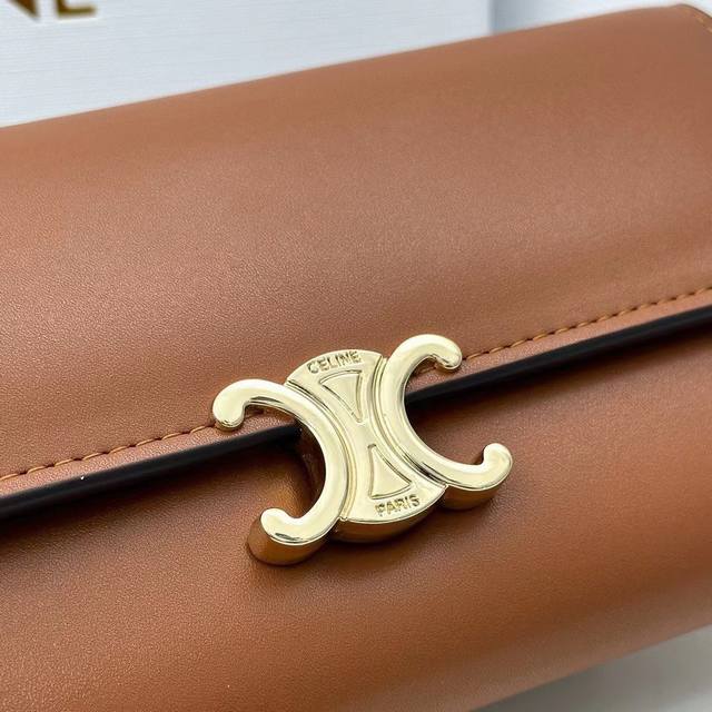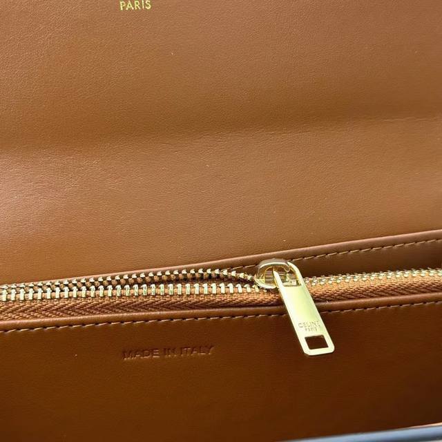 celine新款链条Triomphe名片包,可斜挎,牛皮大面内配平纹超纤,金色饰面Triomphe金属按扣开合,1个加厚主隔层,3个内侧卡槽。...