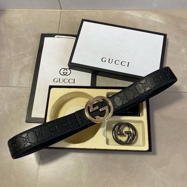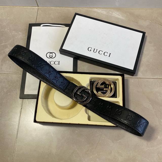 / 古驰gucci精品款 ☆双扣礼盒套装 含礼盒 专柜有售 Gucci专柜在售正品 此款采用头层牛皮制作 走线油边细致 正品开模 搭配广州原版扣经久耐用、3.8Cm