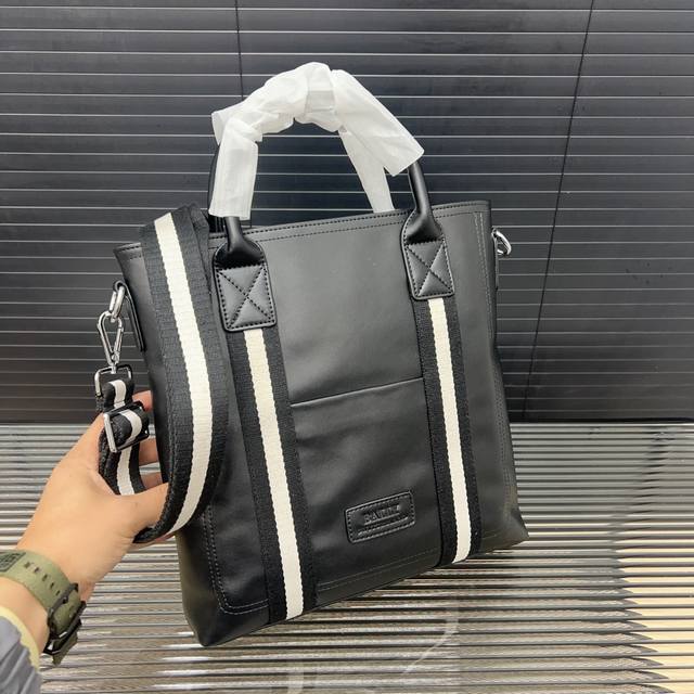 / Bally 巴利 商务休闲织布彩带公文包 男士手提包电脑包 采用精湛镶嵌细工,经典百搭 实物拍摄 原厂原版面料 高端品质 配送防尘袋 30 X 28 Cm。