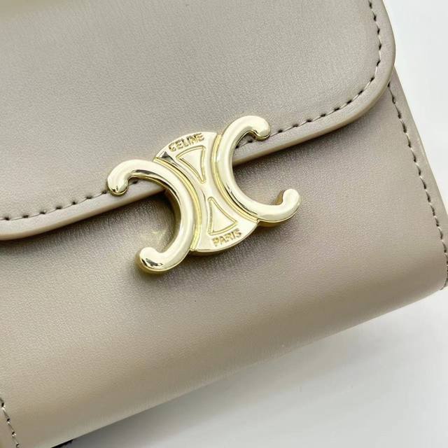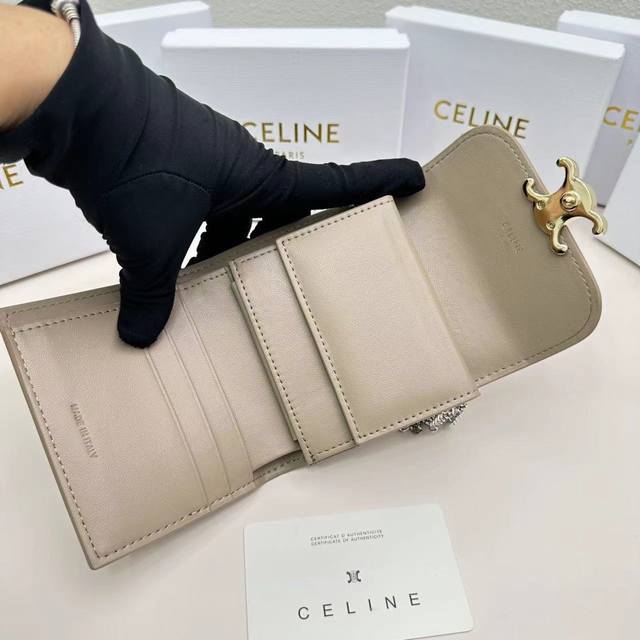 p140Celine 10523颜色 黑杏棕尺寸 11*10*5 celine短式钱包非常炫美的一个系列,专柜同步,采用头层牛皮,精致时尚!