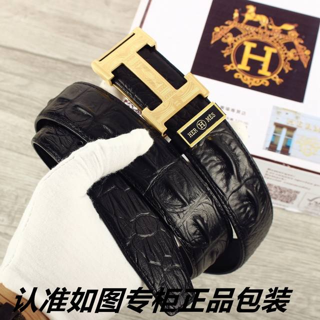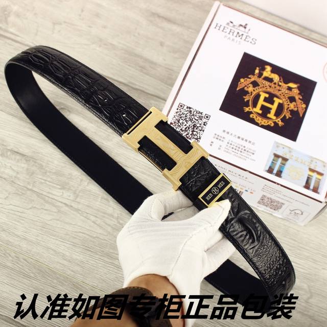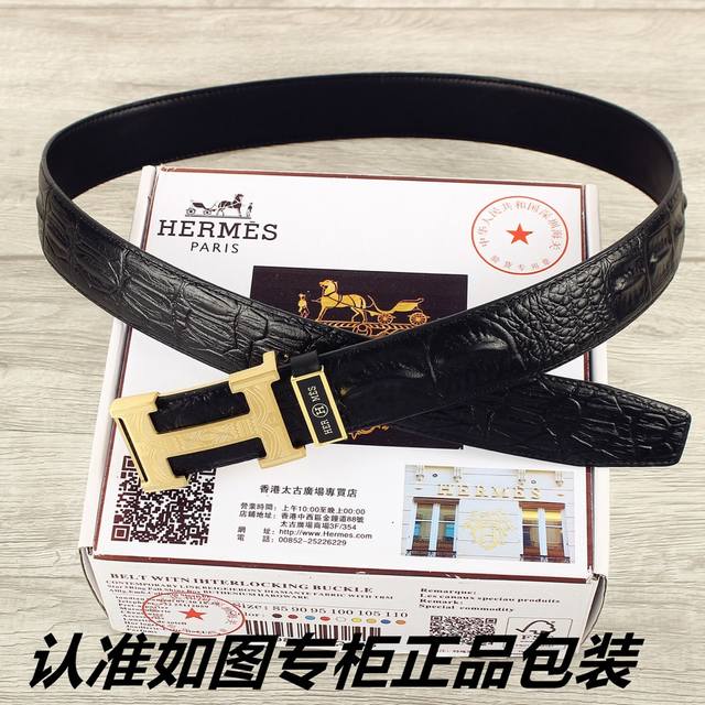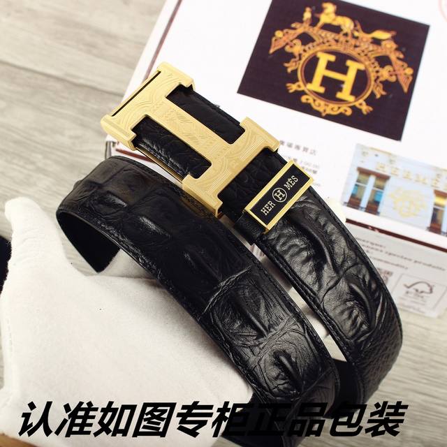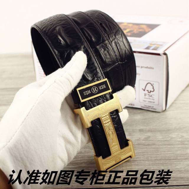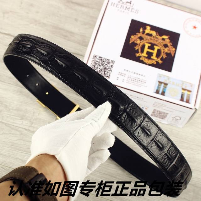 / 品名:爱玛仕.Her..Mes鳄鱼骨纹 型号:认准如图专柜包装,赠送打孔器 材料:百分百头层牛皮皮带,24K纯钢扣,永不掉色保证真皮鳄鱼骨纹路。专柜同等质量,