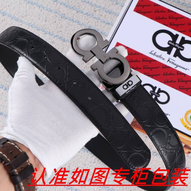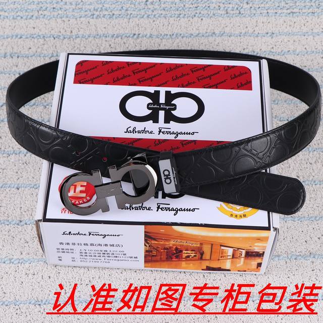 / 品名:菲拉格木原单 材料:百分百头层牛皮,保证真皮。24K纯钢扣双面可用专柜同等质量, 送人自用首选 包装: 请认准如图专柜包装,赠送打孔器,银联发票,宽度3.